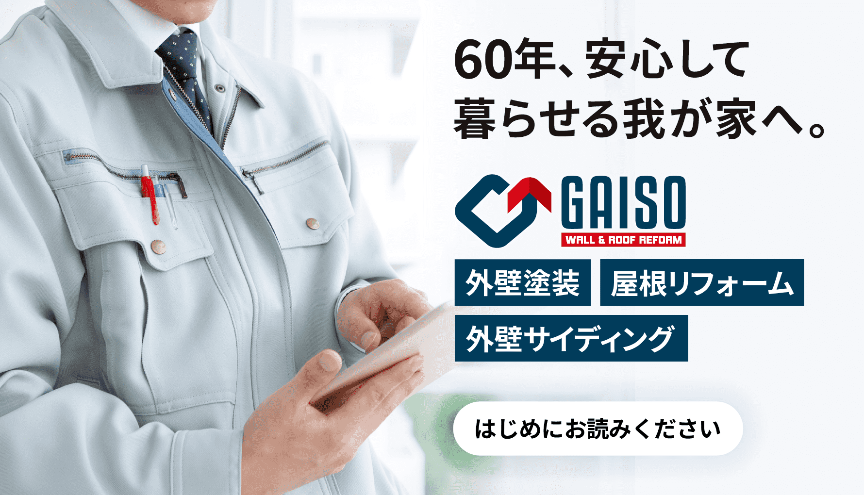 ガイソーでは定期訪問点検を実施しております。早期に不具合を発見することで、将来的な修繕費用を抑えることができます。また、工事内容に合わせて最大20年間の自社発行保証書をお渡ししております(一部補修工事を除く)。長期にわたってお住まいをサポートする体制を整えております。